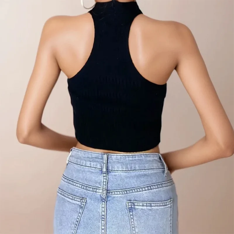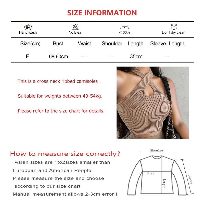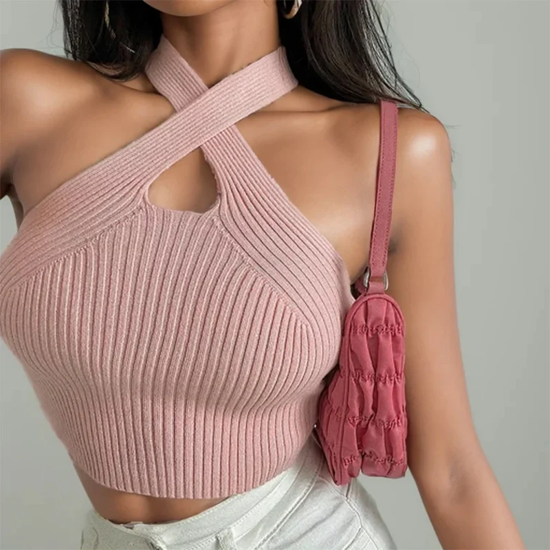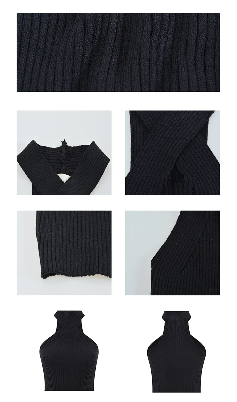 ITOOLIN Women Knit Cross Neck Crop Tops Sexy Slim Solid Backless Sleeveless Camisoles Elastic Rib Casual Underwear Tank Tops