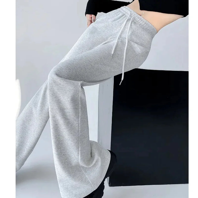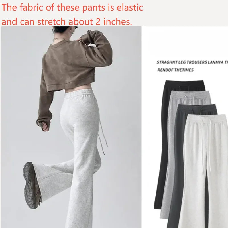Streetwear Women Drawstring Flare Pants Casual Matching Sportswear New In Lady Leggings & Wide Leg Pants Boot Cut Long Trousers