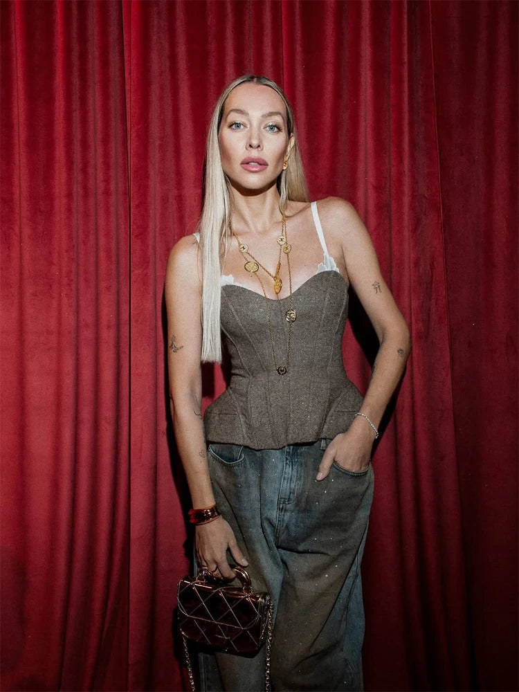 Women Spaghetti Strap Corset Top Female Panelled V-neck Sleeveless Backless Slim Fishbone Blouse 2026 Lady Party Evening Tops